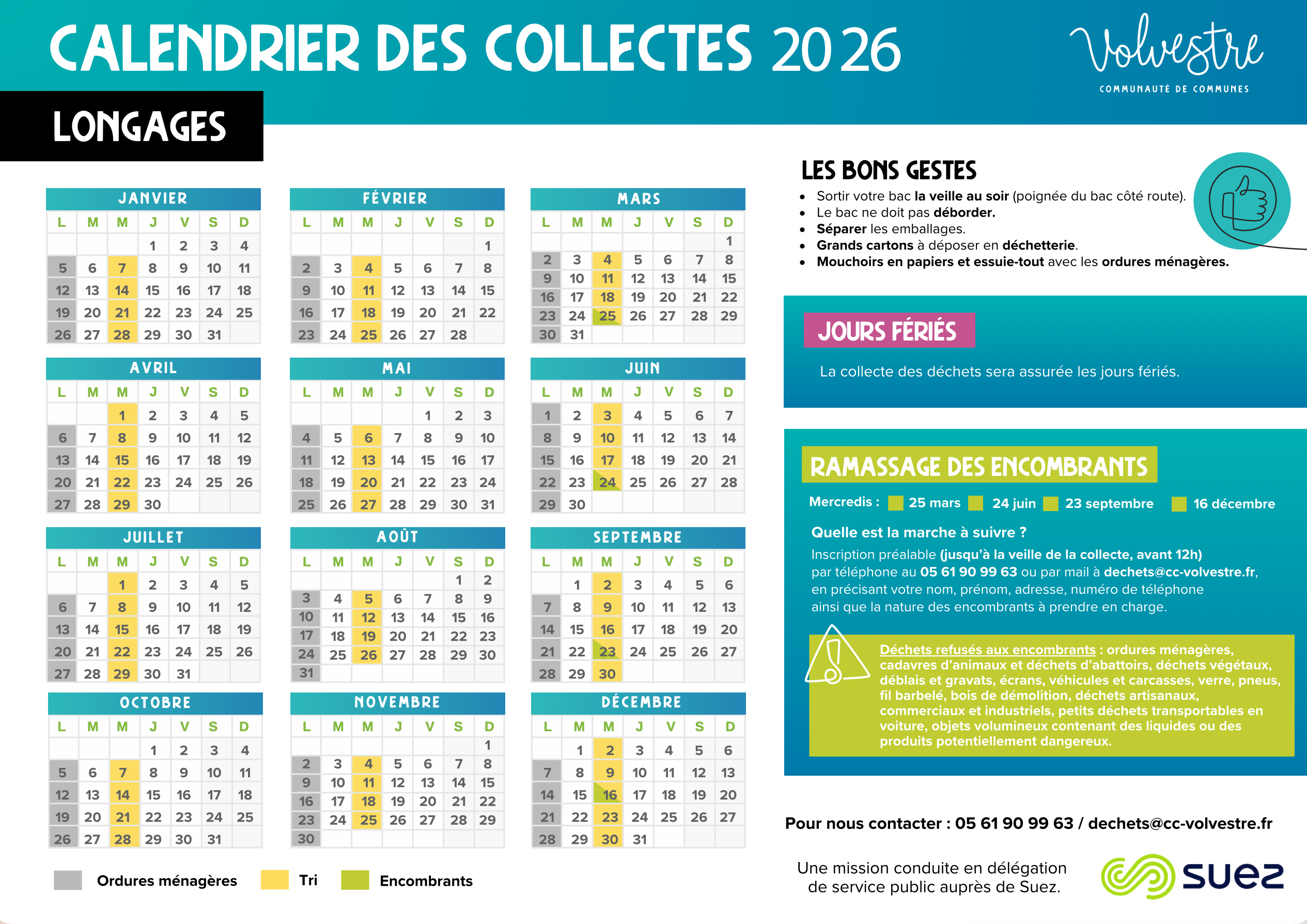 La Communauté de Communes du Volvestre vous informe que les équipes de l’entreprise SUEZ distribueront prochainement en boites aux lettres sur Longages :