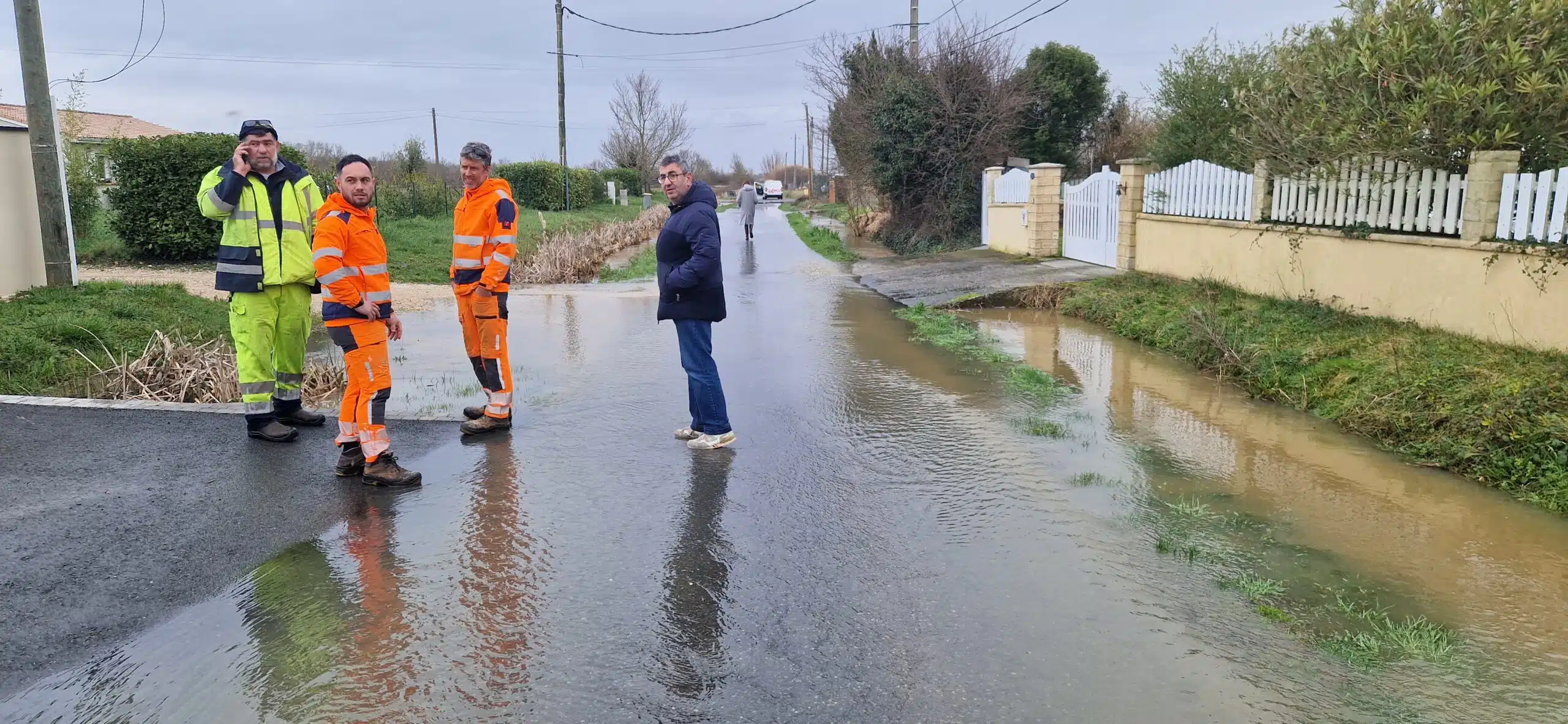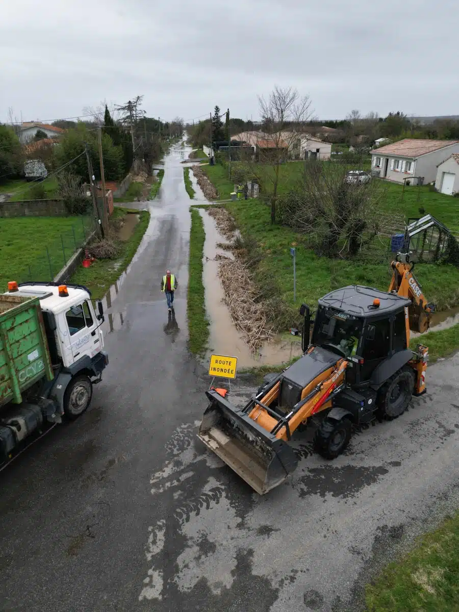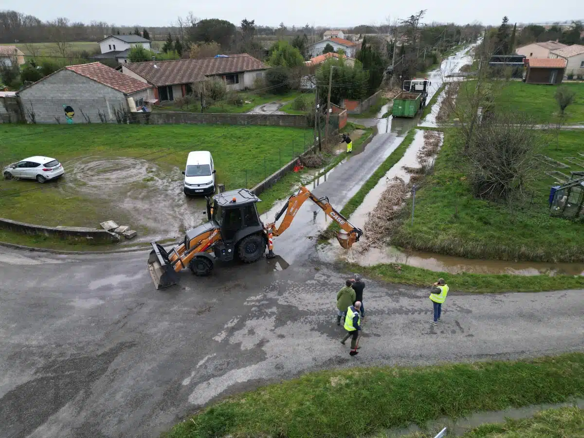 Les services de la Communauté de Communes et les agents de la GEMAPI sont sur place pour coordonner les travaux et réorienter les écoulements des ruissellements et débordements des ruisseaux et cours d’eau qui saturent les fossés.