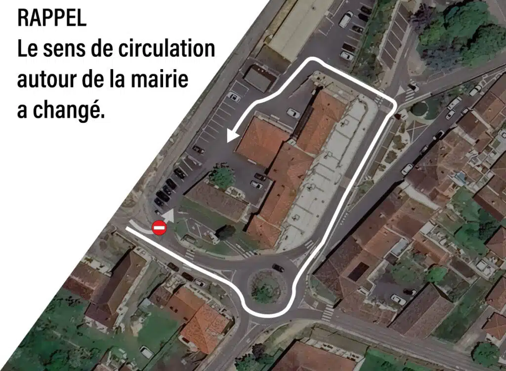 Suite au déplacement de l’abribus, la dangerosité de ces habitudes est encore accrue et le fait de faire le tour du rond-point et de passer devant la mairie pour accéder à l’arrière de celle-ci doit devenir un automatisme pour tous.