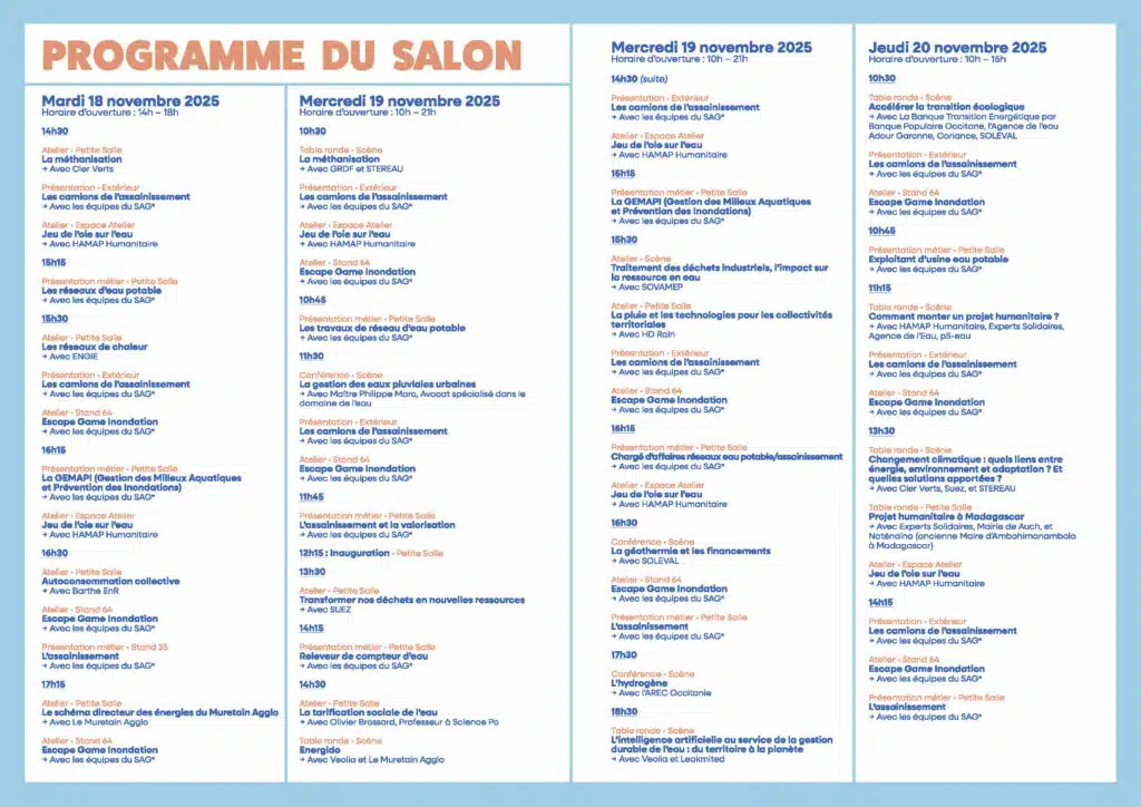 Venez découvrir un parcours immersif autour des grands défis de l’eau, des infrastructures et des énergies renouvelables, avec des conférences, des tables rondes d’experts, un job dating des métiers du secteur et un espace exposants.