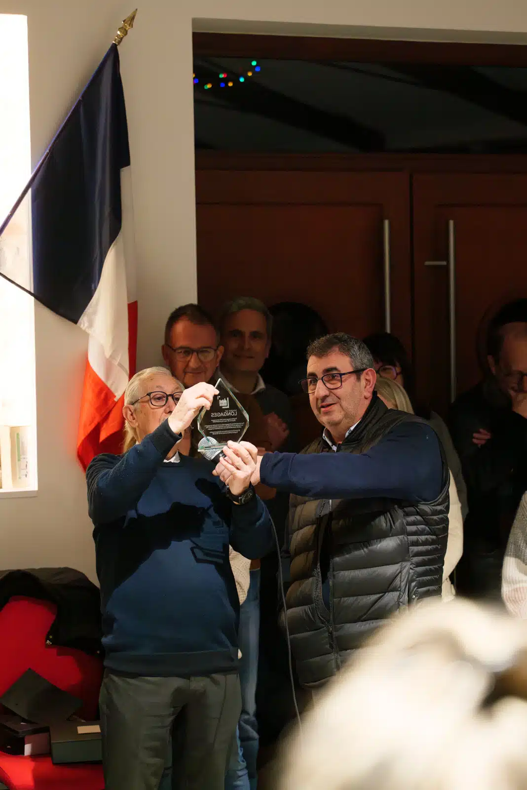 Après un court discours mot de Monsieur le Maire et un mot de bienvenue aux nouveaux Longagiens, un trophée citoyen a été remis à Monsieur Jean-Claude Bardina.